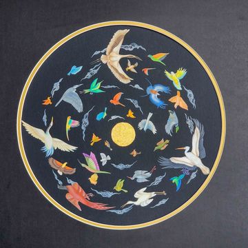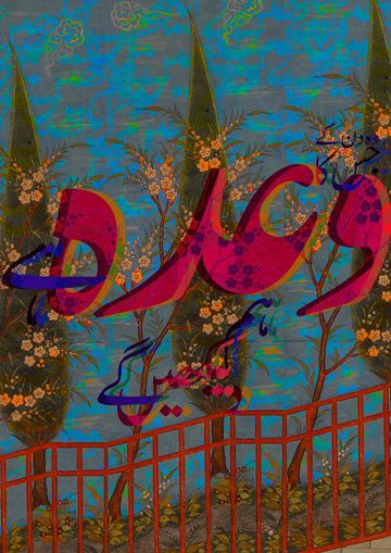 Gouache, watercolour, gold leaf on black wasli