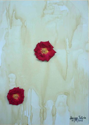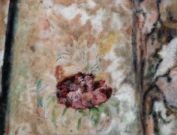 colour pencil, tea stain on wasli