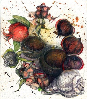 Ink, watercolor & needle pricks