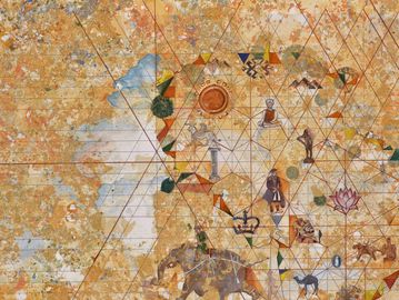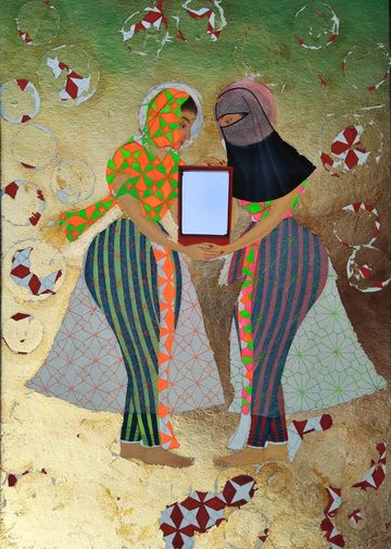 Mirror, gold leaf and gouache on wasli