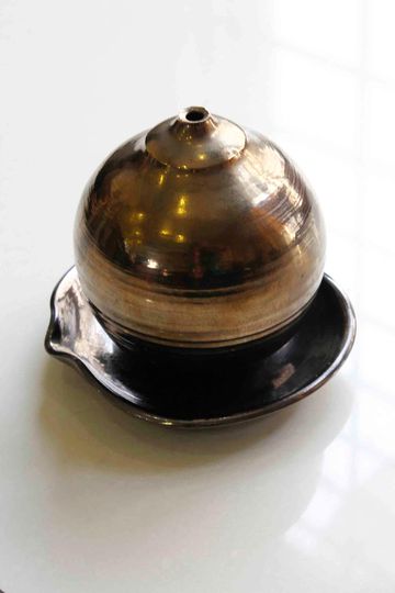Ceramic, low temperature gold bronze glaze