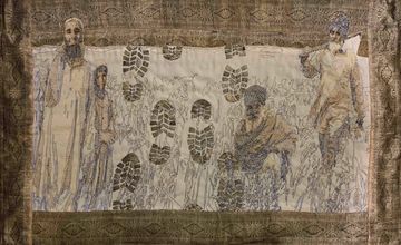 Embroidery and textile collage on linen